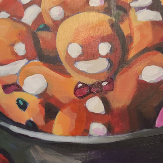 GINGERBREAD MAN | Original acrylic painting on cradle wood canvas | 12”x 12” | Impressionistic | Finished Edges | (Copy)
